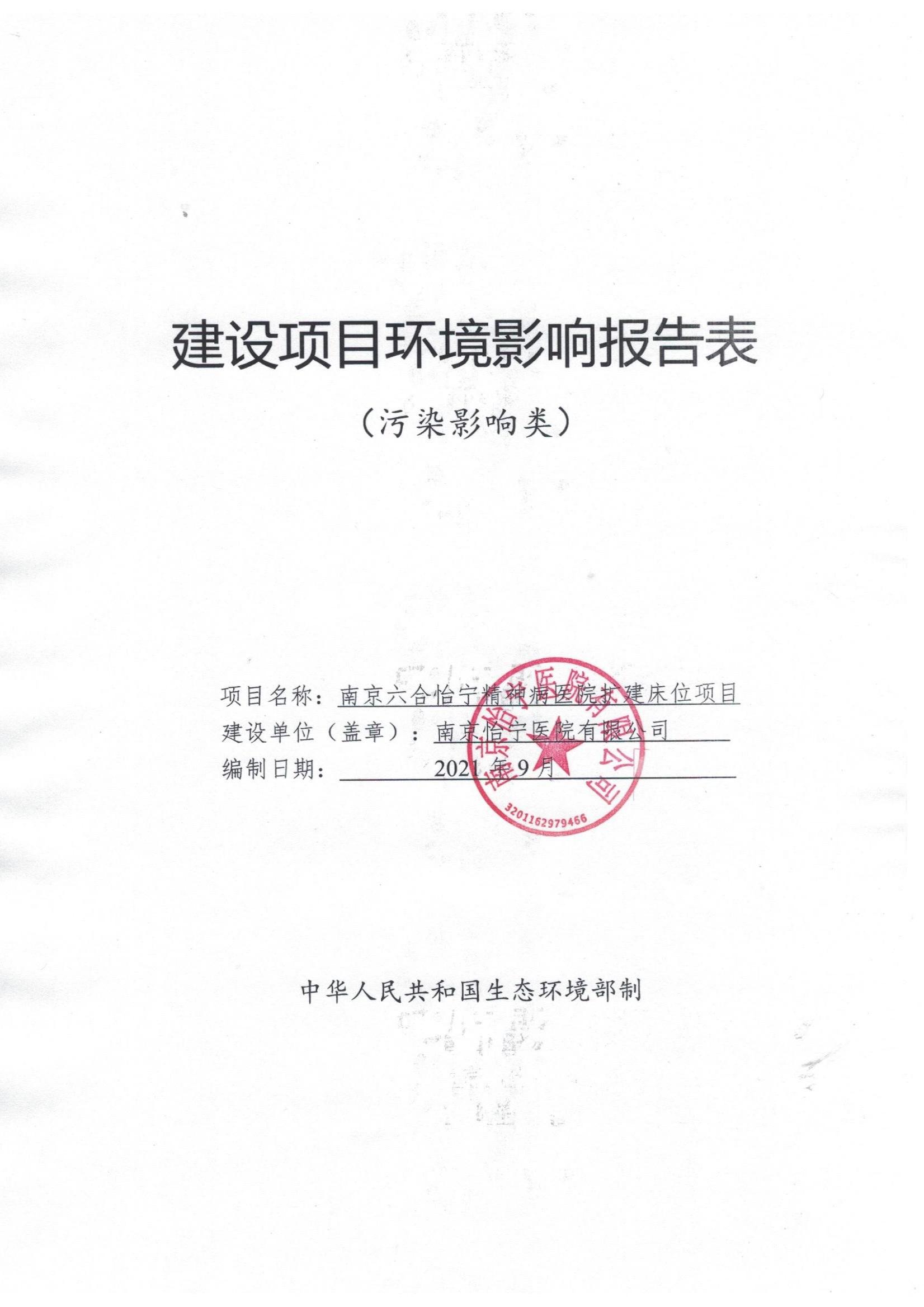 南京六合怡寧精神病醫(yī)院擴(kuò)建床位項目公示